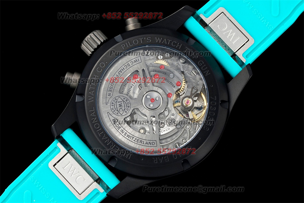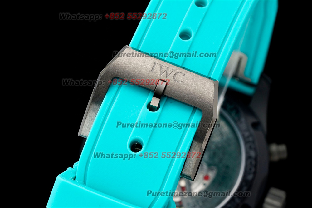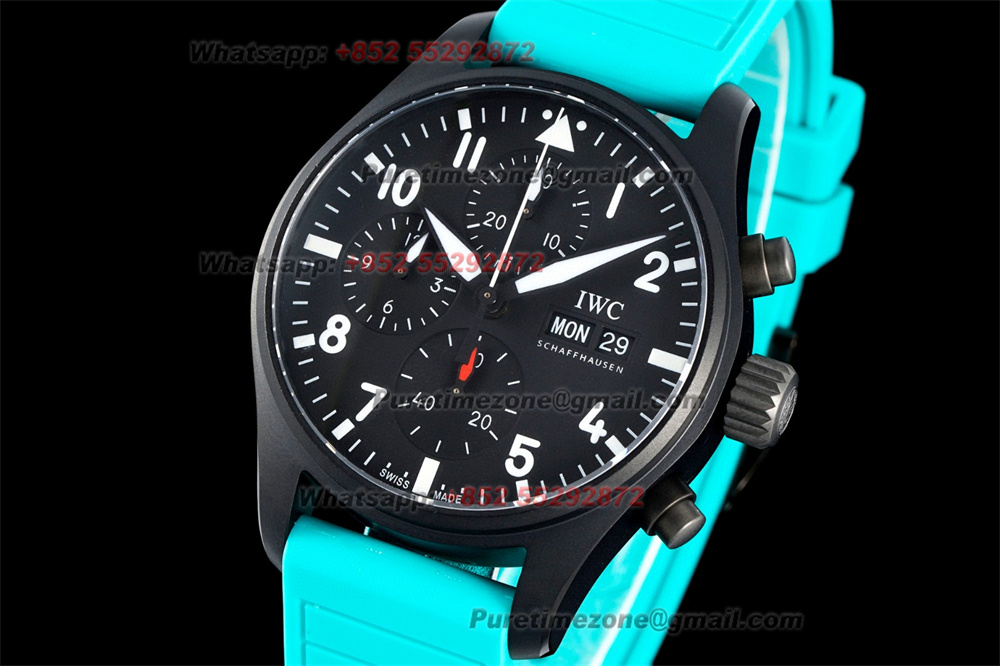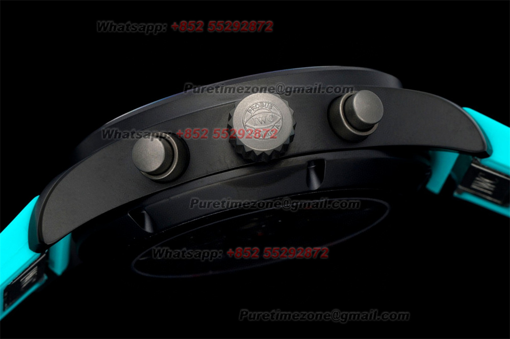 Home IWC Pilot Spitfire Chronograph Edition IW388108 Automatic Mens Watch Super Clone BLSF DLC All Black Dial Blue Rubber Strap A69385