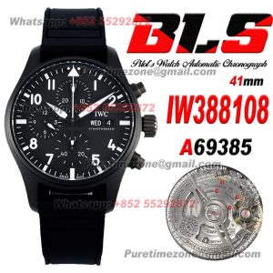 Home IWC Pilot Spitfire Chronograph Edition IW388108 Automatic Mens Watch Super Clone BLSF DLC All Black Dial Blue Rubber Strap A69385