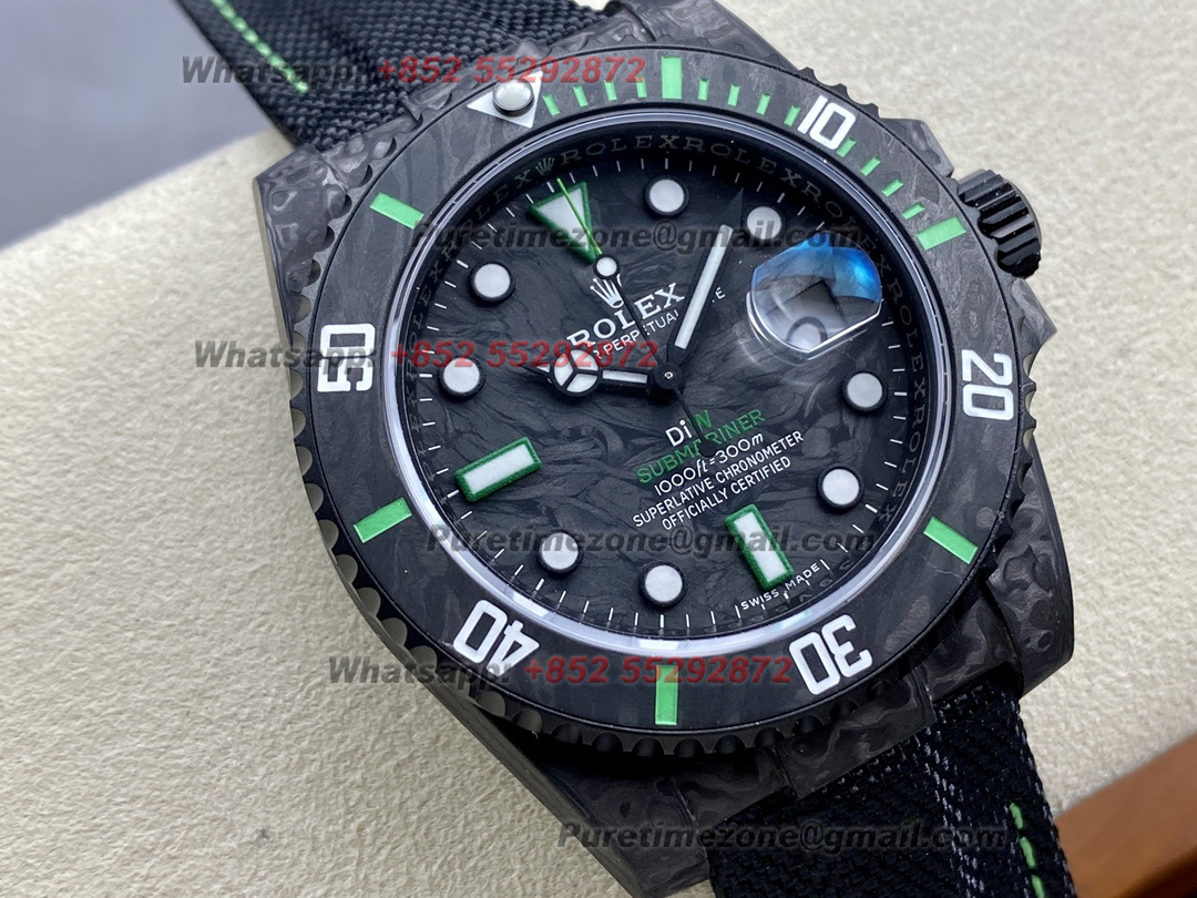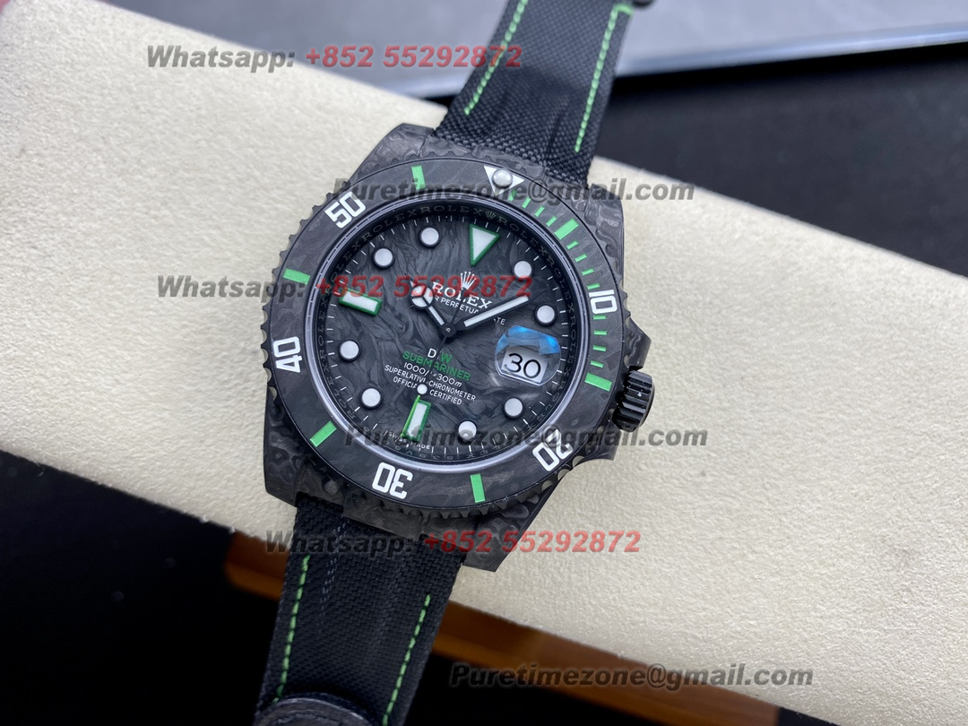Submarine 116610 DIW Carbon Automatic Mens Watch Super Clone VSF 40 Black Green Dial Nylon Strap VS3135