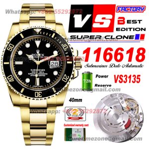 Submarine 116618 YG Automatic Mens Watch Super Clone VSF 40 Black Dial 904L SS Bracelet VS3135 $850.00 $700.00