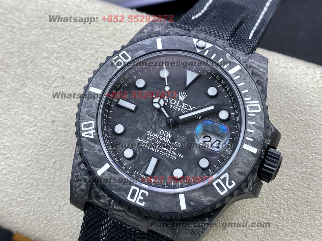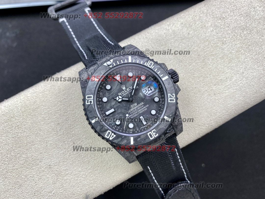 Home Rolex Submariner Submarine 116610 DIW Carbon Automatic Mens Watch Super Clone VSF 40 Black White Dial Nylon Strap VS3135