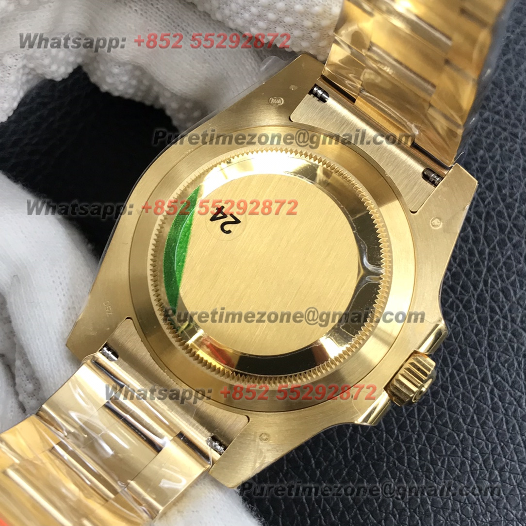 Strap:904L stainless steel bracelet with perfect SEL, clasp and divers extension and smooth screws, 18k yellow gold plated middle links