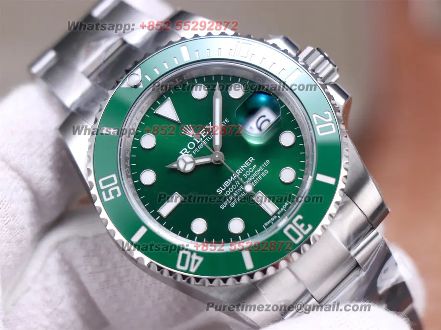 Submarine Date Hulk 116610 Automatic Mens Watch Super Clone VSF V3 40 Green Dial 904L SS Bracelet VS3135