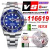 Submarine Date Smurfs 116619 Automatic Mens Watch Super Clone VSF V3 40 Blue Dial 904L SS Bracelet VS3135