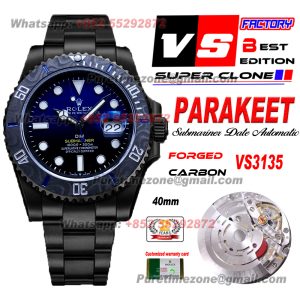 Submarine DIW PARAKEET Automatic Mens Watch Super Clone VSF 40 DLC Blue Dial SS Bracelet VS3135 $900.00 $780.00