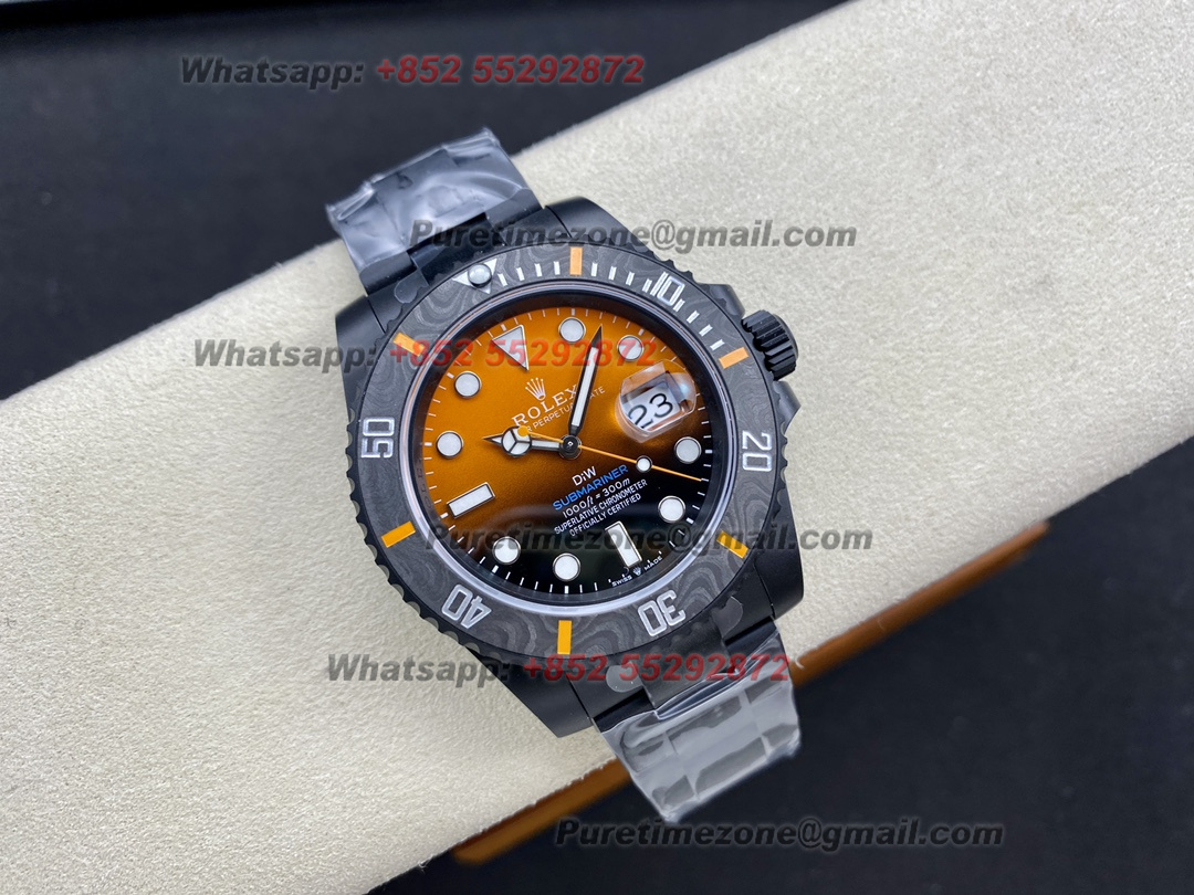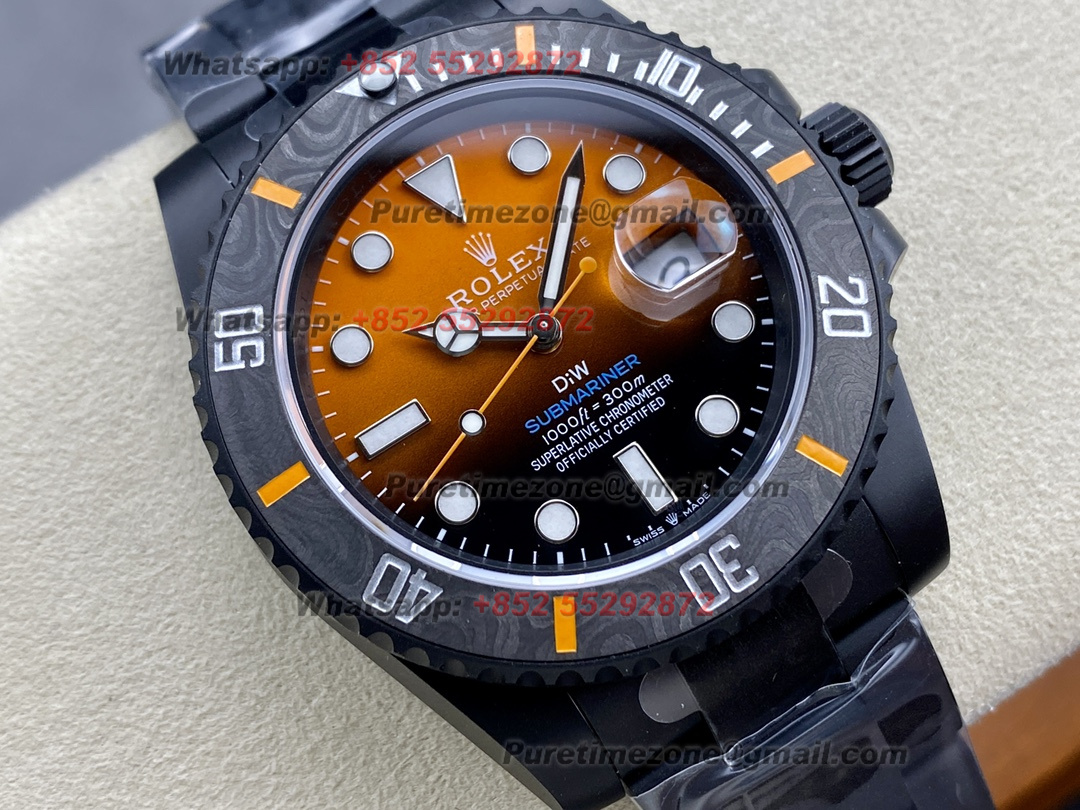 Home Rolex Submariner Submarine DIW PARAKEET Automatic Mens Watch Super Clone VSF 40 DLC Orange Dial SS Bracelet VS3135
