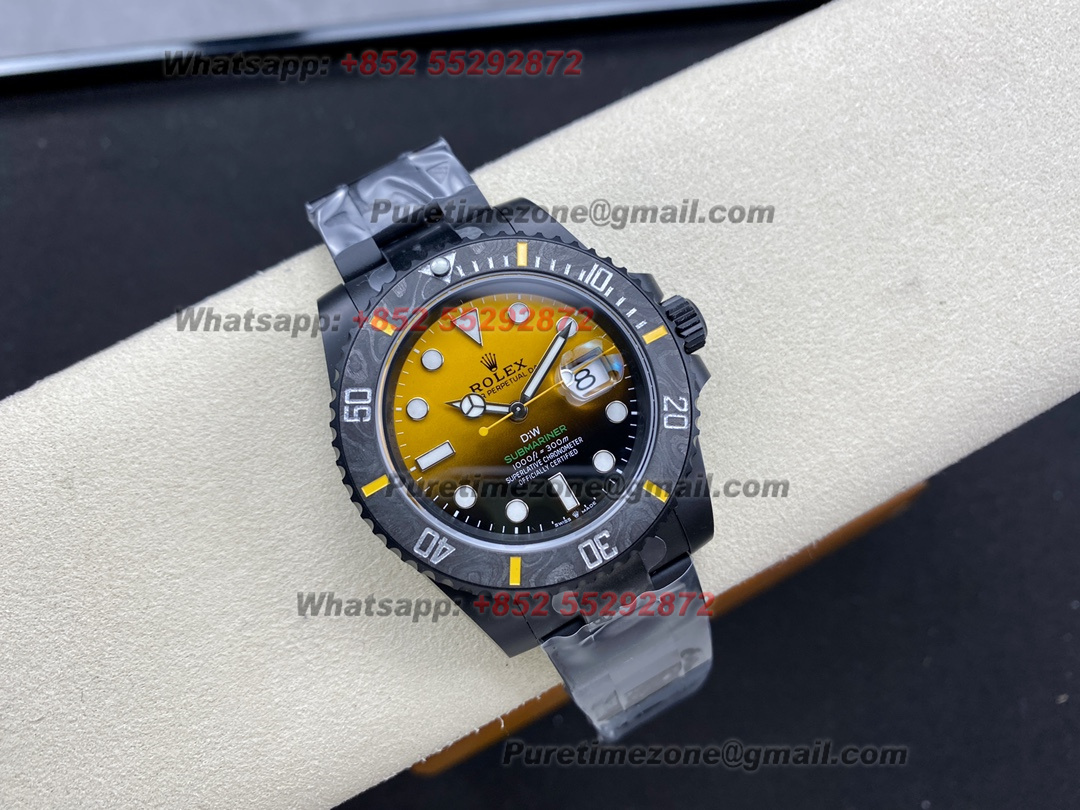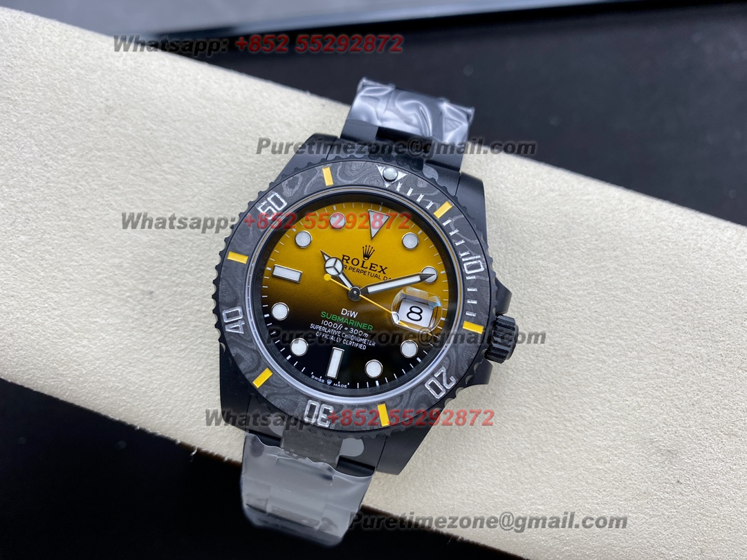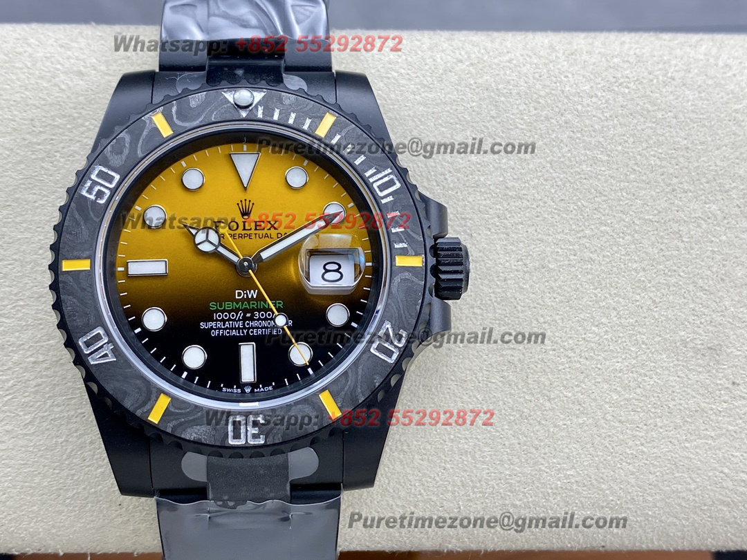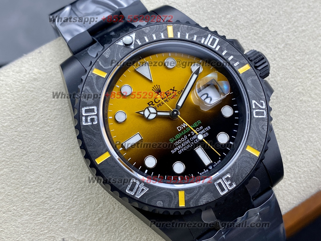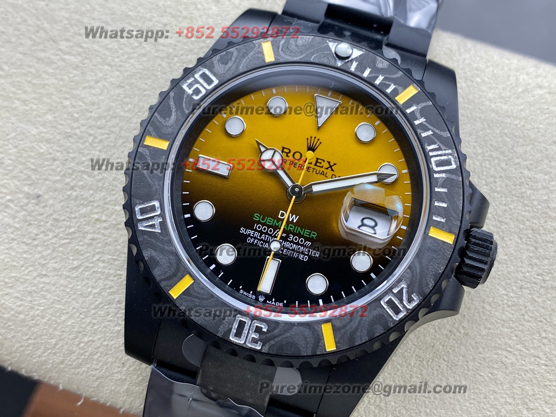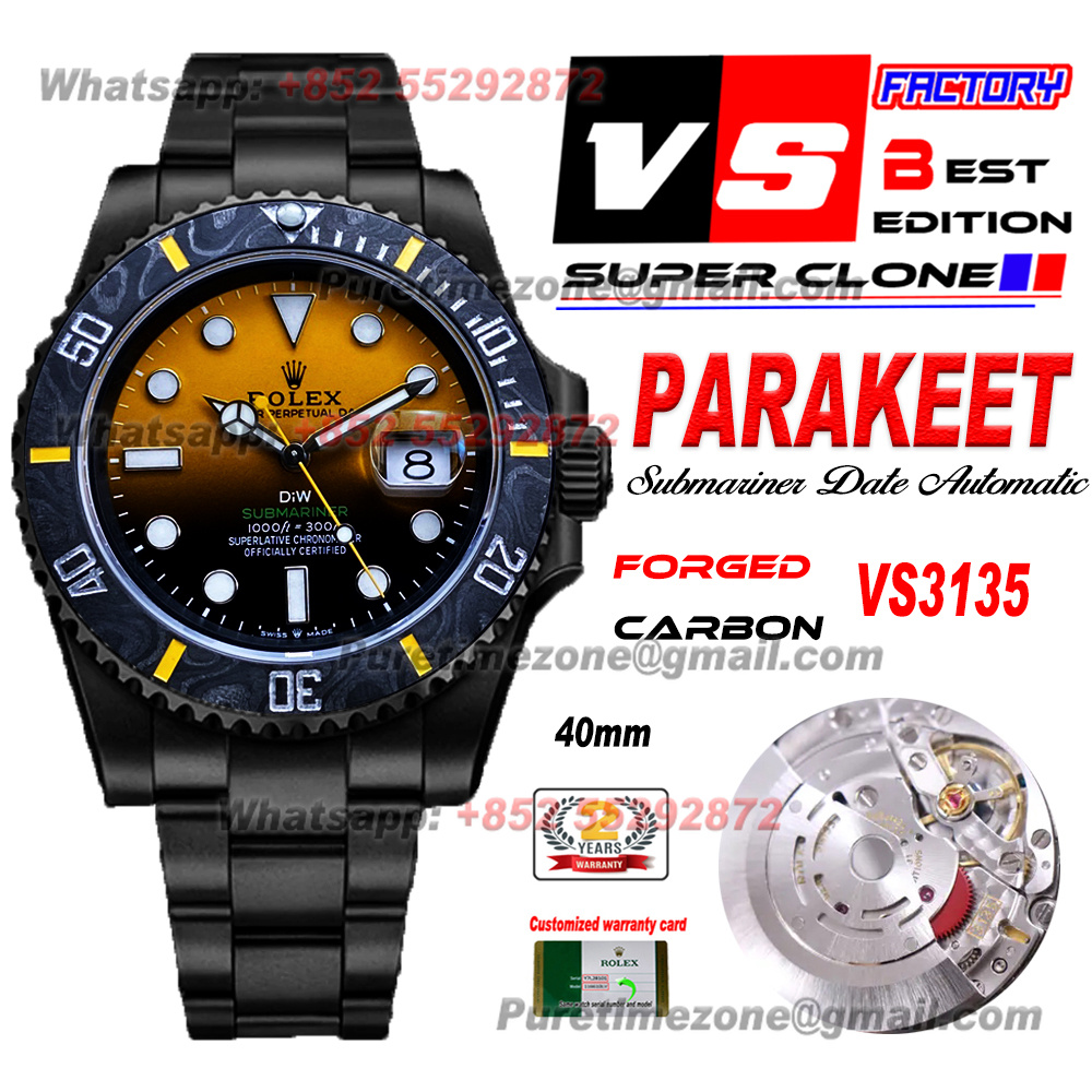 Home Rolex Submariner Submarine DIW PARAKEET Automatic Mens Watch Super Clone VSF 40 DLC Yellow Dial SS Bracelet VS3135
