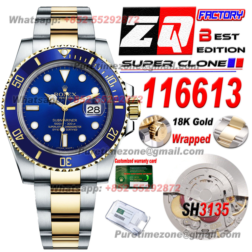 Be the first to review “Submariner 116613LB 40 SS/YG Automatic Mens Watch 18k Gold Wrapped Super Clone ZQF V2 Blue Dial Oyster Bracelet SH3135” Cancel reply