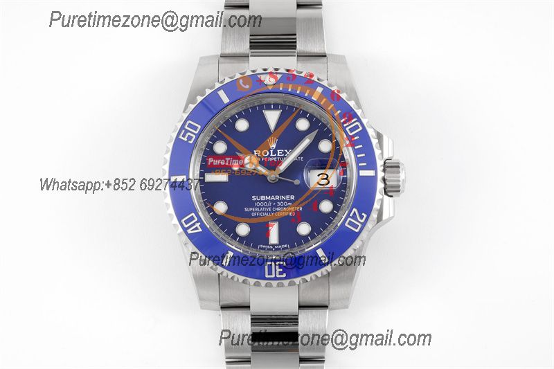 Submariner 116610LN VR3135 Automatic Mens Watch Best Edition Clean Blue Fiber Bezel Black Dial 904L SS Bracelet CHS