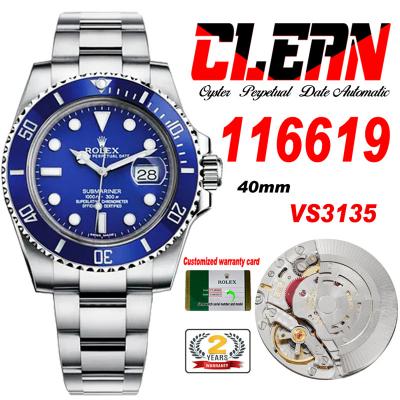 Submariner 116619 VR3135 Automatic Mens Watch Best Edition Clean Ceramics Bezel Blue Dial 904L SS Bracelet