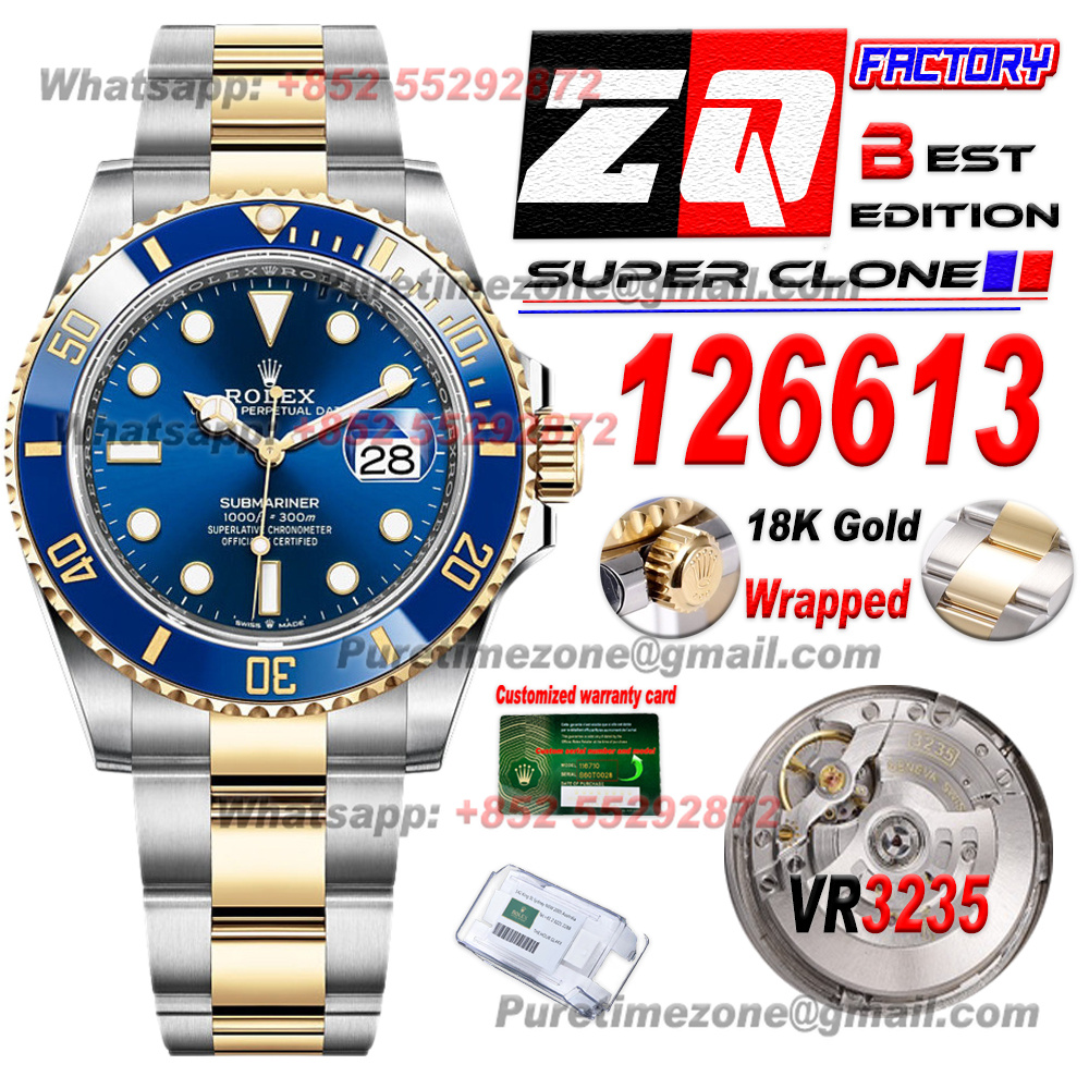 Submariner 126613LB 41 SS/YG Automatic Mens Watch 18k Gold Wrapped Super Clone ZQF V2 Blue Dial Oyster Bracelet VR3235