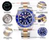 Submariner 116618LB 40 YG Automatic Mens Watch 18k Gold Wrapped Super Clone ZQF V2 Blue Dial Oyster Bracelet SH3135