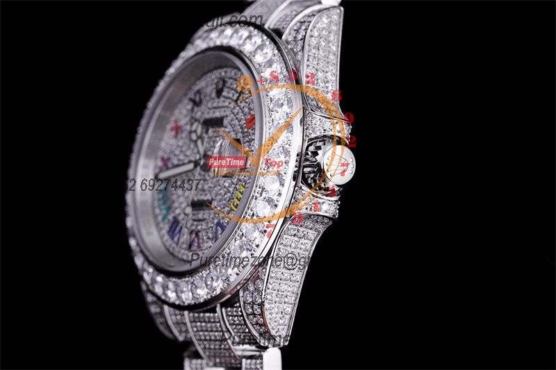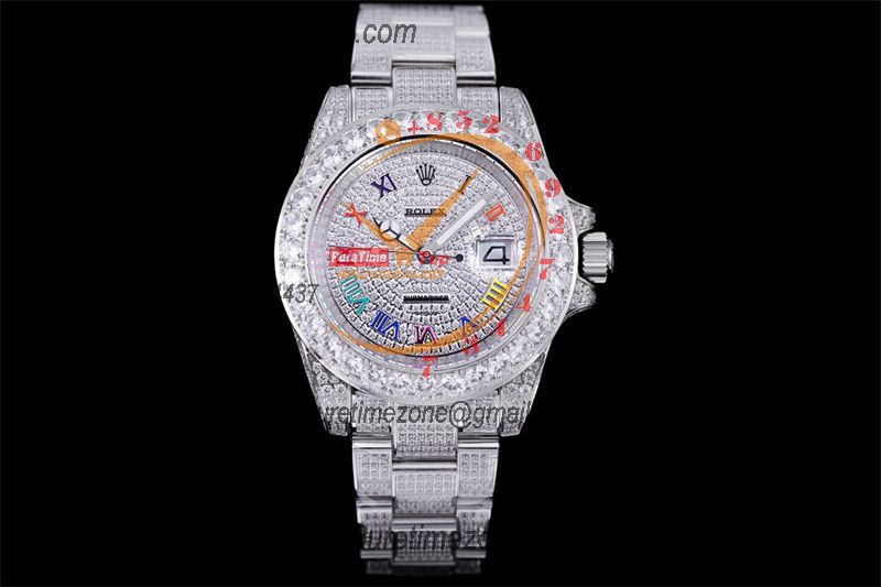 Submariner A21J Automatic Mens Watch Best Edition ZYF Paved Diaomond Color Roman Dial Fully Ice Out 904L Steel Bracelet