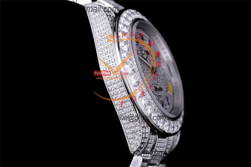Datejust A2824 Automatic Mens Watch 41 Best Edition RRF Red Arabic Paved Diamonds Fully Iced Out 904L Steel Bracelet