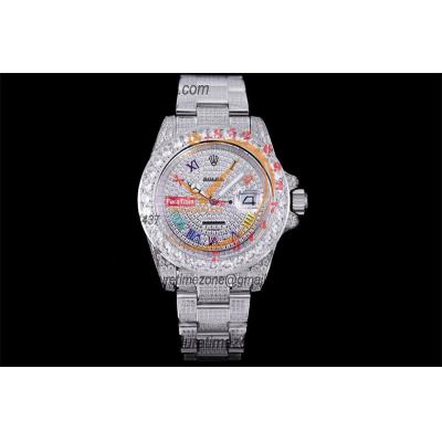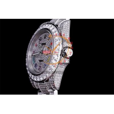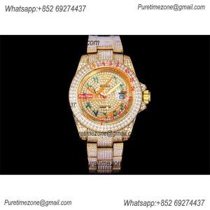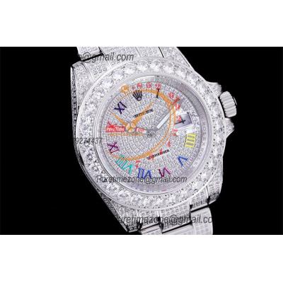 Submariner A21J Automatic Mens Watch Best Edition ZYF Paved Diaomond Color Roman Dial Fully Ice Out 904L Steel Bracelet