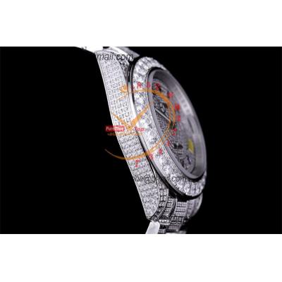 Datejust A2824 Automatic Mens Watch 41 Best Edition RRF Black Roman Paved Diamonds Fully Iced Out 904L Steel Bracelet