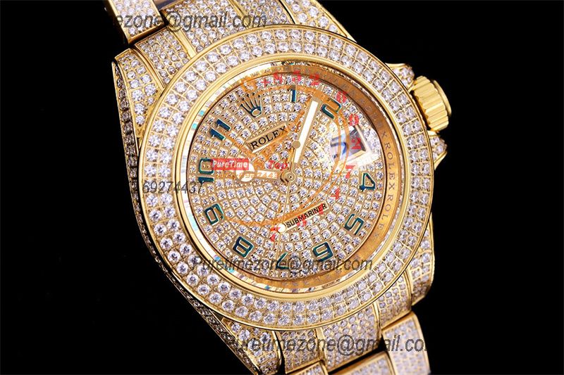 Submariner A21J Automatic Mens Watch Best Edition ZYF YG Paved Diaomond Colors Number Dial Ice Out 904L Steel Bracelet $600.00 $500.00