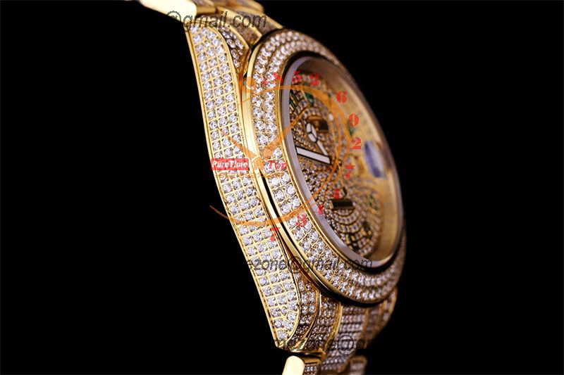 Datejust A2824 Automatic Mens Watch 41 Best Edition RRF Yellow Arabic Paved Diamonds Fully Iced Out 904L Steel Bracelet