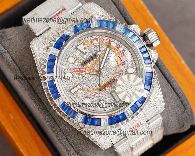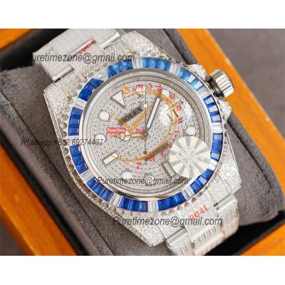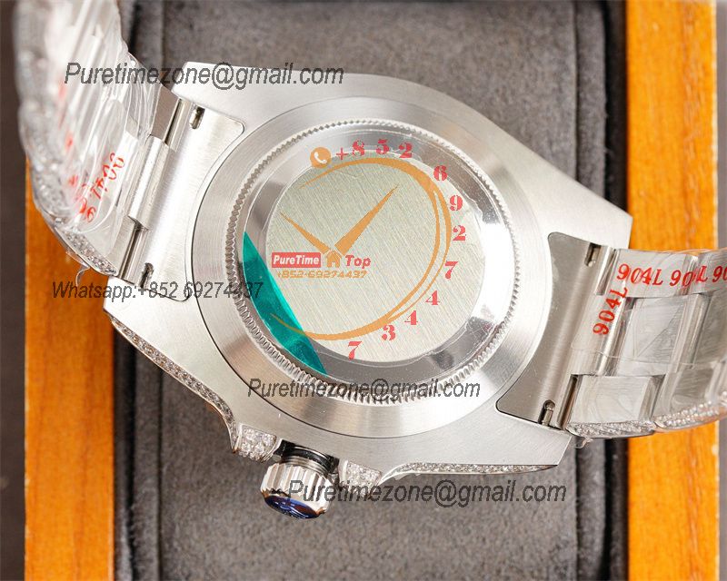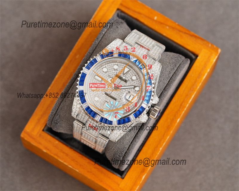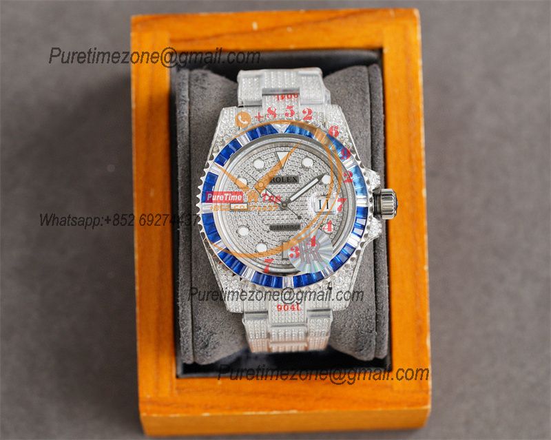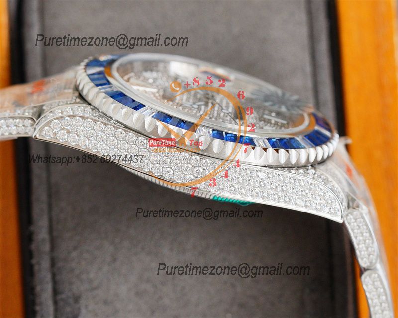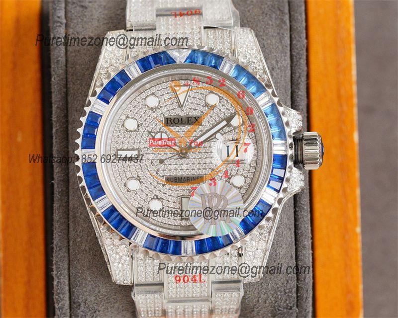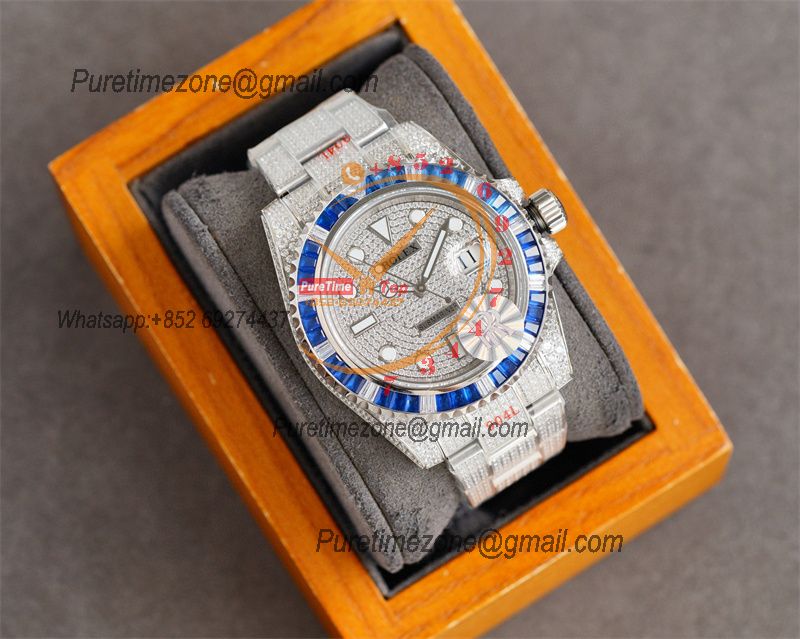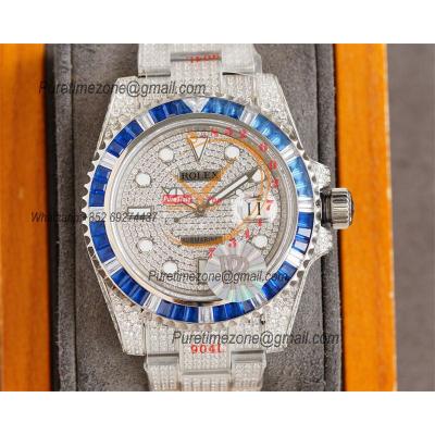 Submariner A2836 Automatic Mens Watch Best Edition RRF Blue Diamond Bezel Paved Diamonds Ice Out 904L Steel Bracelet
