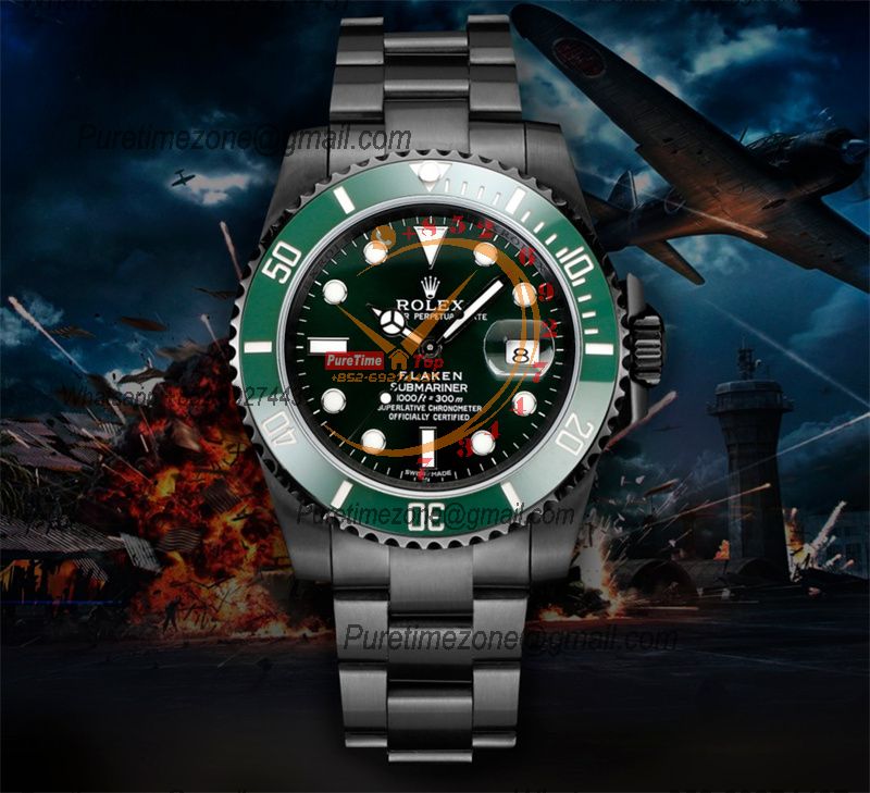 V6F Submariner BLAKEN A3135 Automatic Mens Watch DLC All Black Green Dial Oyster SS BraceletBest Edition