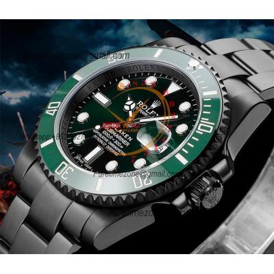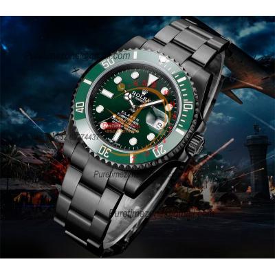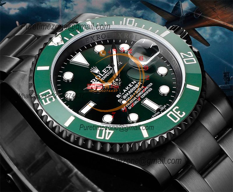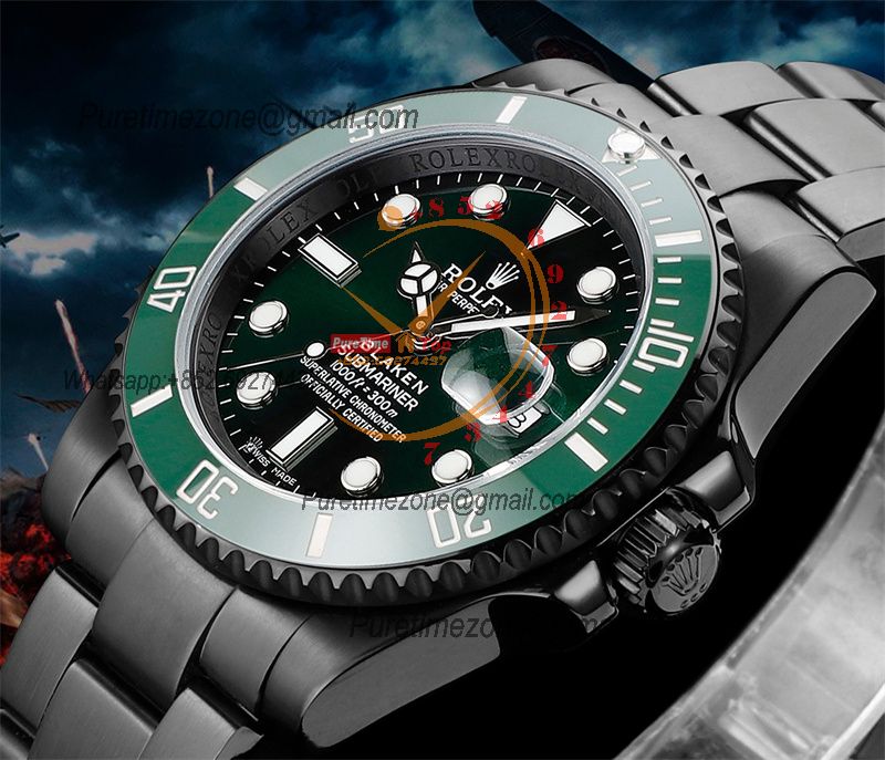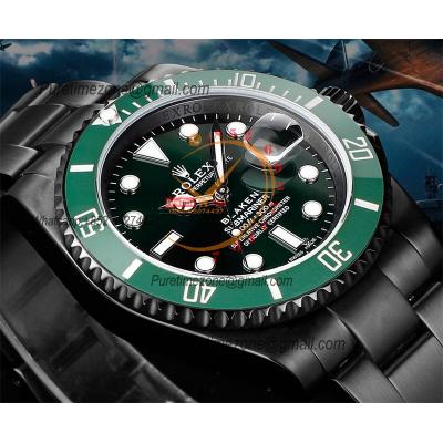 Submariner BLAKEN A3135 Automatic Mens Watch Best Edition BLAKENF 40 PVD Steel All Black Green Dial Oyster Steel Bracele