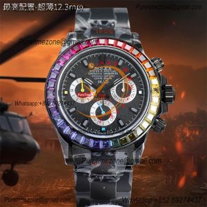 Daytona Blaken A7750 Automatic Chrono Mens Watch Best Edition BLAKENF Rainbow Diamond Bezel PVD Steel All Black Dial CHS $696.00 $580.00