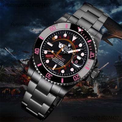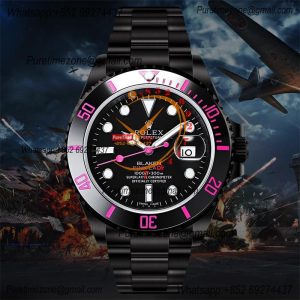 Submariner BLAKEN A3135 Automatic Mens Watch Best Edition BLAKENF 40 PVD Steel All Black Pink Dial Oyster SS Bracelet