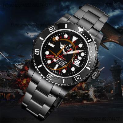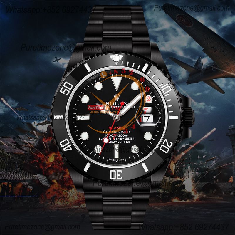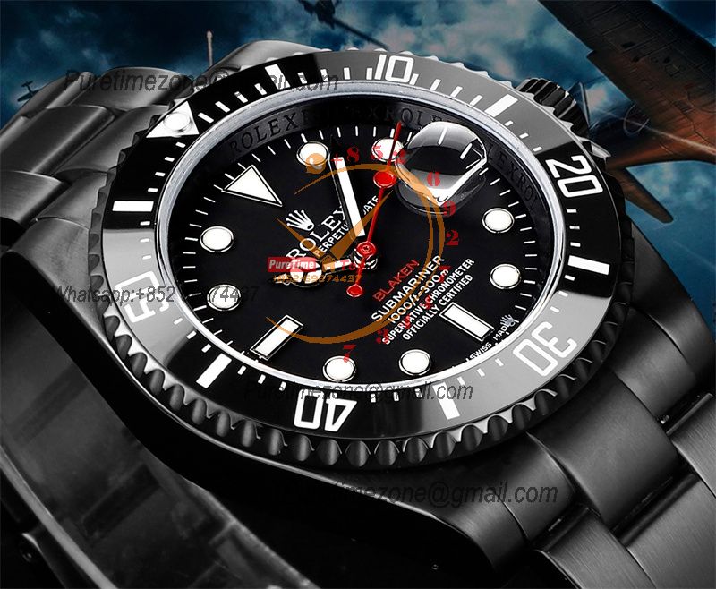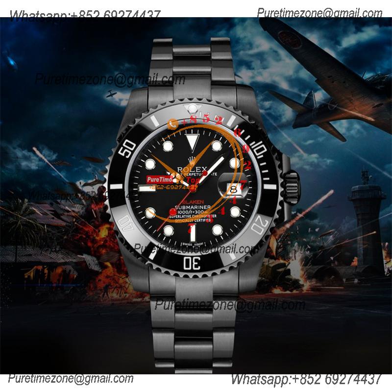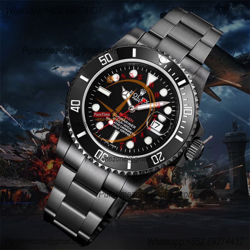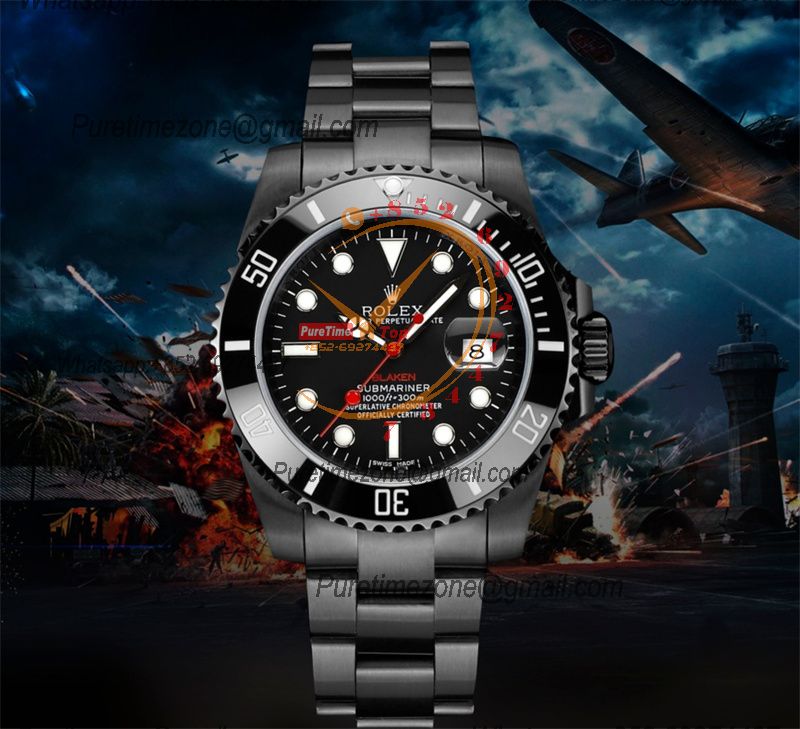 Submariner BLAKEN A3135 Automatic Mens Watch Best Edition BLAKENF 40 PVD Steel All Black Red Dial Oyster SS Bracelet CH