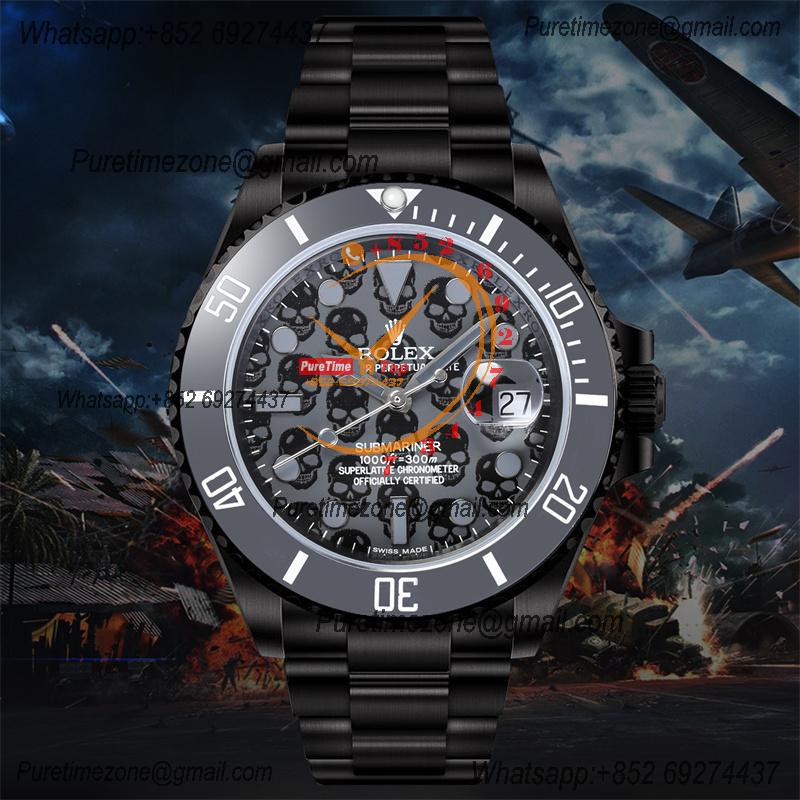 Submariner BLAKEN A3135 Automatic Mens Watch Best Edition BLAKENF 40 PVD Steel All Black Skull Dial Oyster SS Bracelet