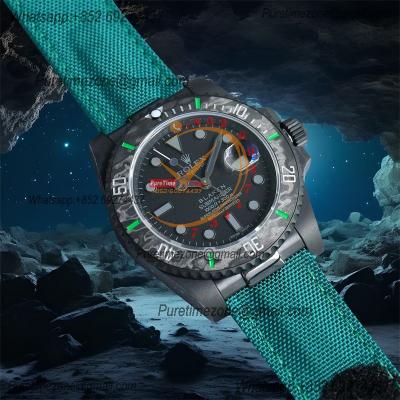 Submariner BLAKEN Forged Carbon A3135 Automatic Mens Watch Best Edition BLAKENF 40 Black Dial Green Nylon CHS