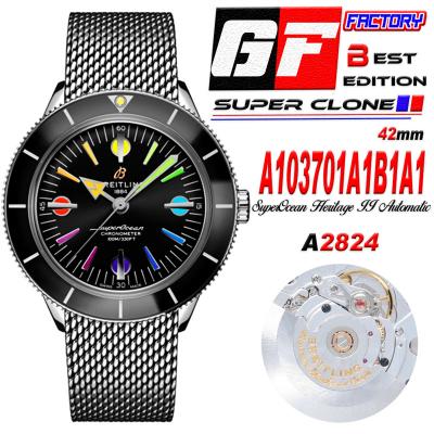 SuperOcean Heritage II 42 A103701A1B1A1 A2824 Automatic Mens Watch Best Edition GF Black Dial SS Mesh Bracelet CHS