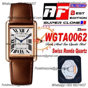 Tank Louis Must 25mm WGTA0062 Swiss Quartz Womens Watch Best Edition AF RG White Dial Leather Ladies