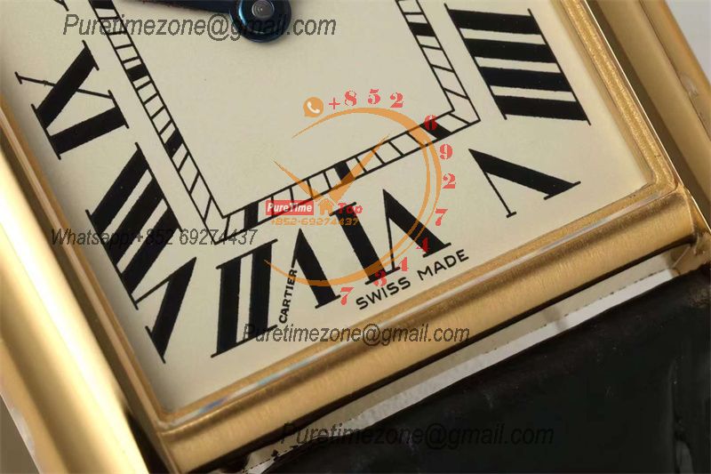 WGTA0067 Tank Louis L Wrapped Yellow Gold 25.5mm Swiss Quartz Unisex Watch DRF Best Edition White Dial Black Croc Leathe