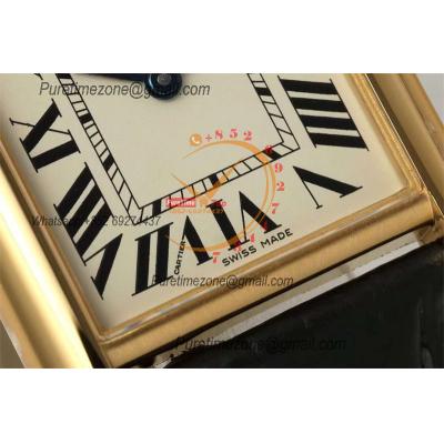 Vintage Tank Must L Wrapped 24K Yellow Gold 25.5mm Swiss Quartz Unisex Watch DRF Best Edition Red Dial Croc Leathe Strap