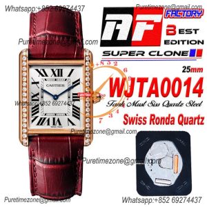 Tank Louis Must 28mm W5200003 Swiss Ronda Quartz Womens Watch Best Edition AF Diamond Bezel White Dial Leather Ladies