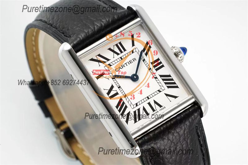 Tank Solo XL 31mm W5200027 M9015 Automatic Mens Watch Best Edition AF White Dial Black Leather Strap CHS