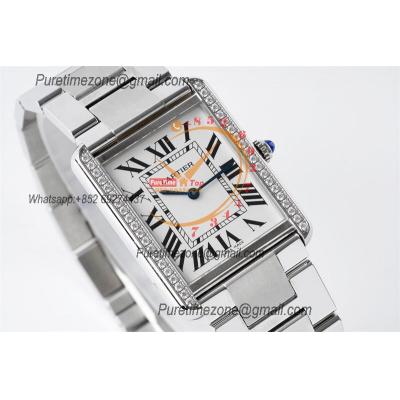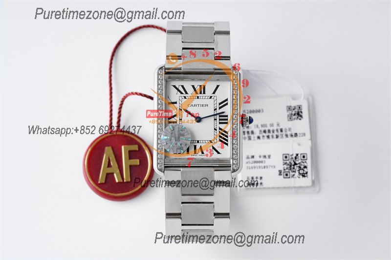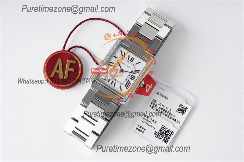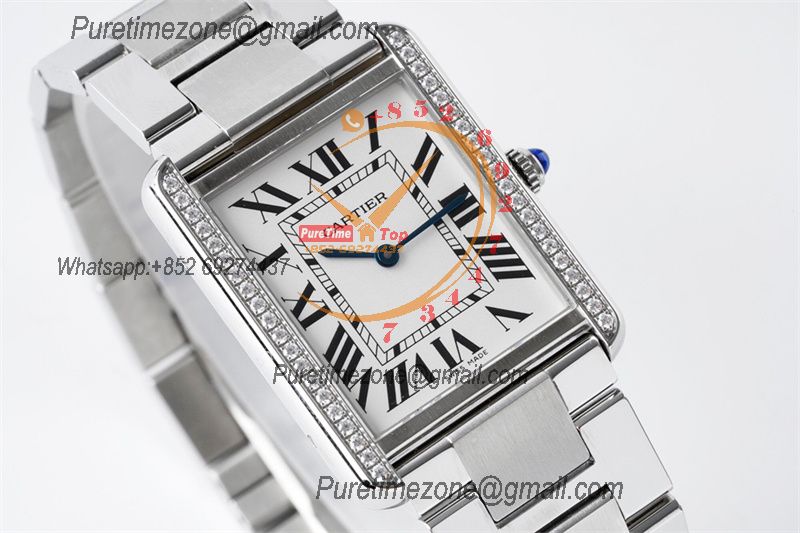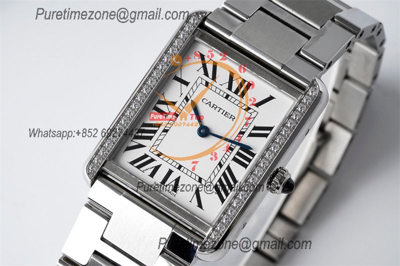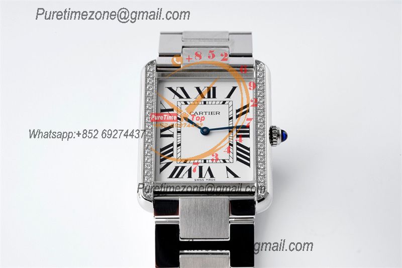 Tank Louis Must 28 W5200025 Swiss Ronda Quartz Womens Watch Best Edition AF Diamond Bezel White Dial SS Bracelet Ladies