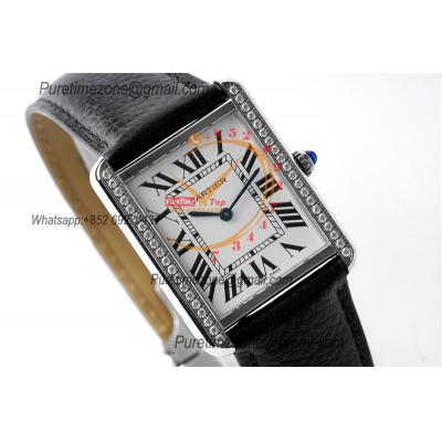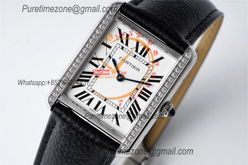 Tank Louis Must 28mm W5200003 Swiss Ronda Quartz Womens Watch Best Edition AF Diamond Bezel White Dial Leather Ladies