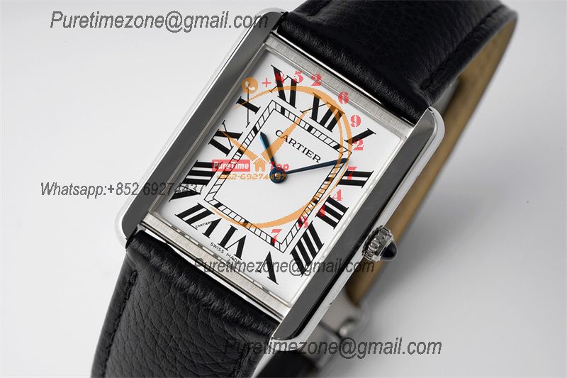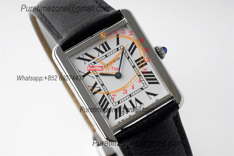 Tank Solo XL 31mm WSTA0040 M9015 Automatic Mens Watch Best Edition AF White Dial Black Leather Strap CHS