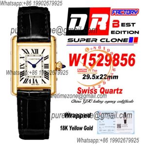 W1529856 Tank Louis S Wrapped Yellow Gold 22mm Swiss Quartz Womens Watch DRF Best Edition White Dial Black Croc Leather