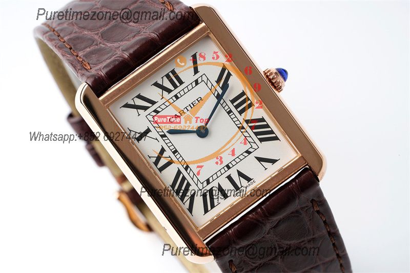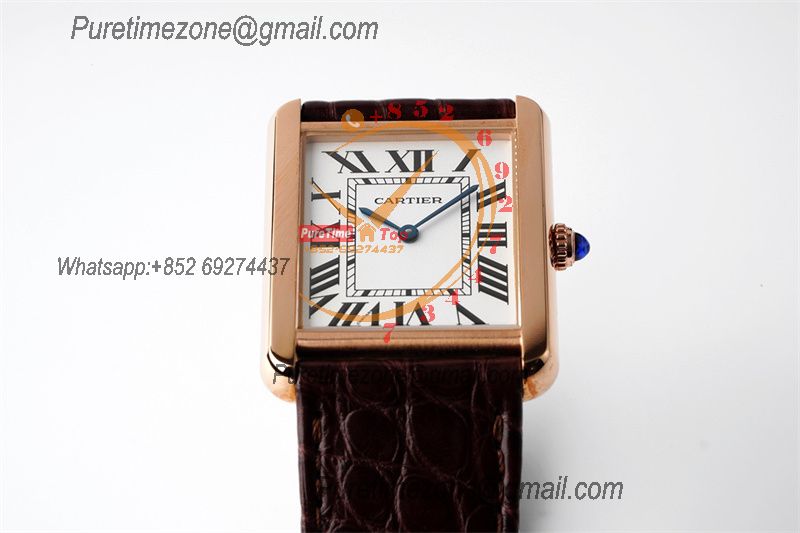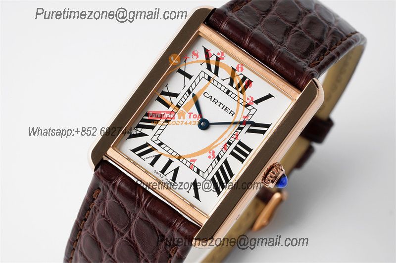 Tank Louis Must 28mm W5200025 Swiss Ronda Quartz Womens Watch Best Edition AF RG White Dial Leather Strap Ladies