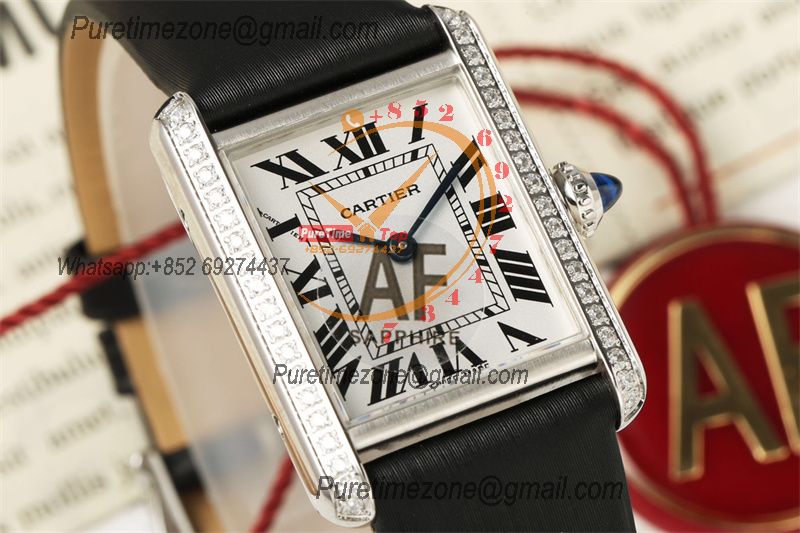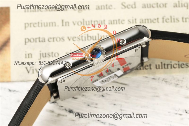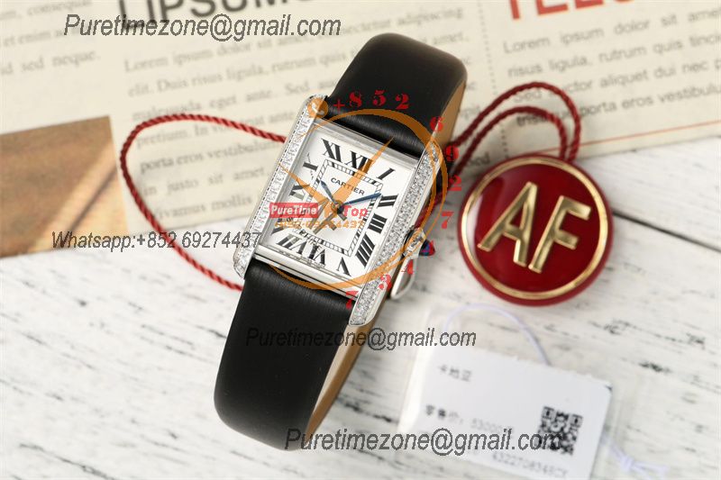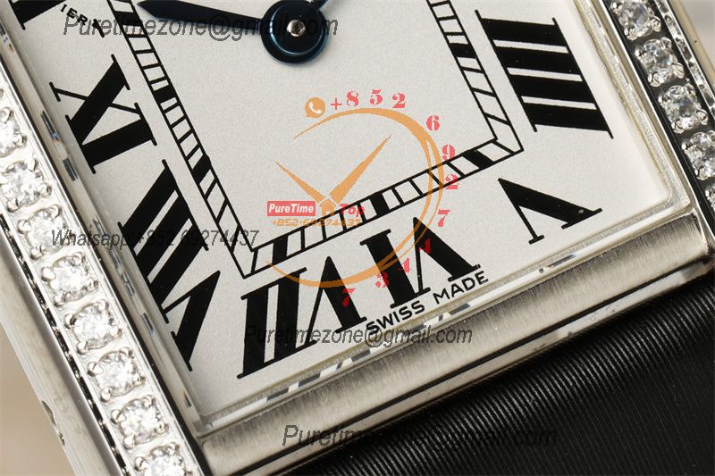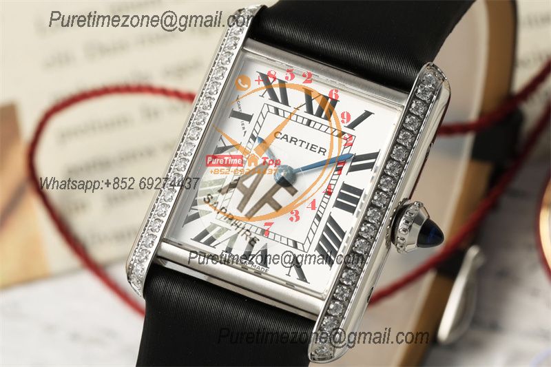 Tank Louis Small Model 22mm W4TA0016 Swiss Quartz Womens Watch Best Edition AF Dimond Bezel White Dial Leather