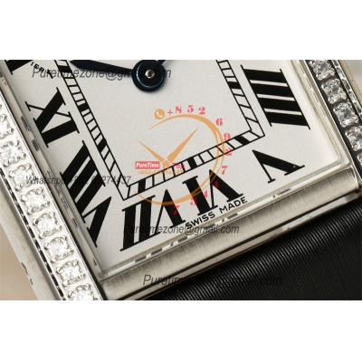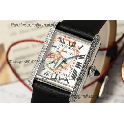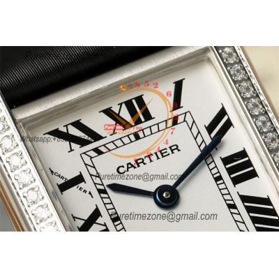 Tank Louis Small Model 22mm W4TA0016 Swiss Quartz Womens Watch Best Edition AF Dimond Bezel White Dial Leather