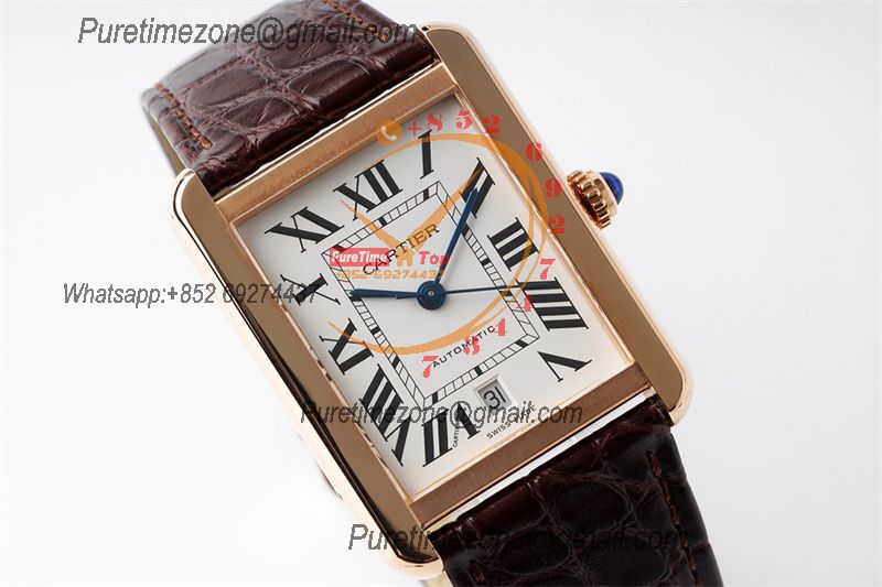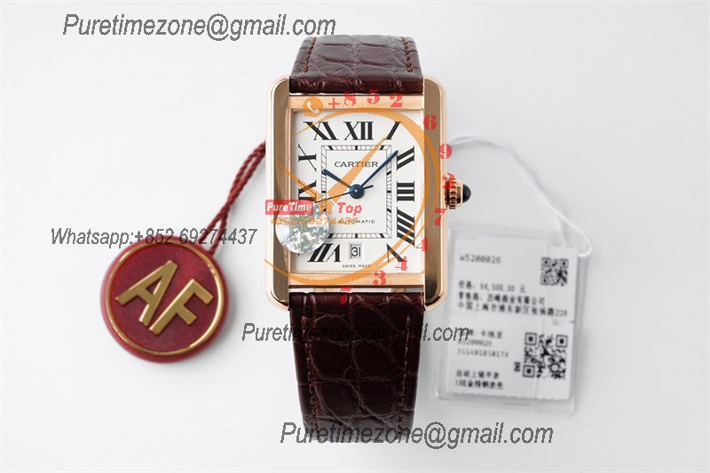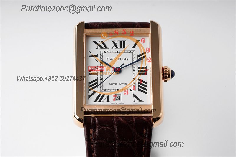 Tank Solo XL 31mm W5200026 M9015 Automatic Mens Watch Best Edition AF RG Diamond Bezel White Dial Leather CHS