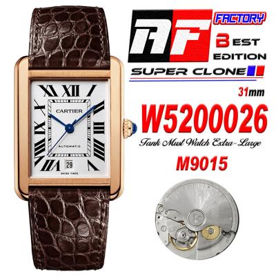 Tank Solo XL 31mm W5200026 M9015 Automatic Mens Watch Best Edition AF RG Diamond Bezel White Dial Leather CHS