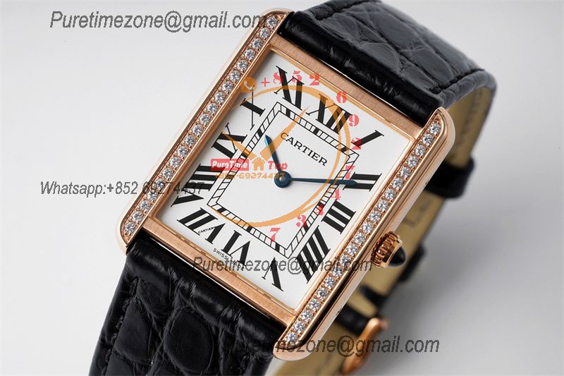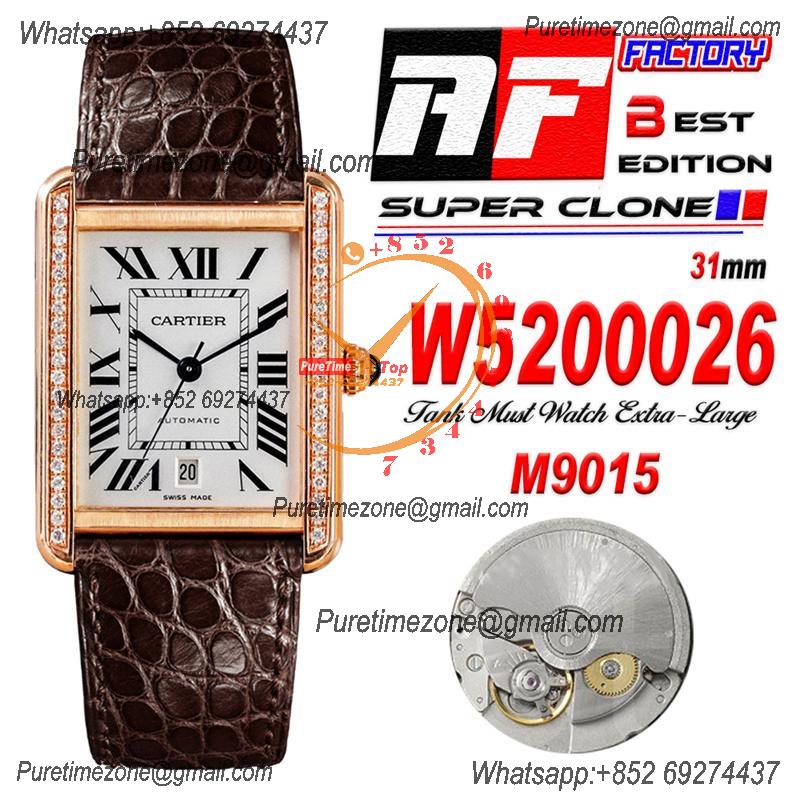 Tank Solo XL 31mm W5200026 M9015 Automatic Mens Watch Best Edition AF RG Diamond Bezel White Dial Leather CHS