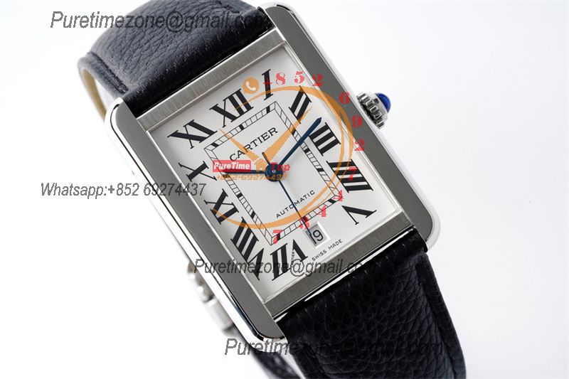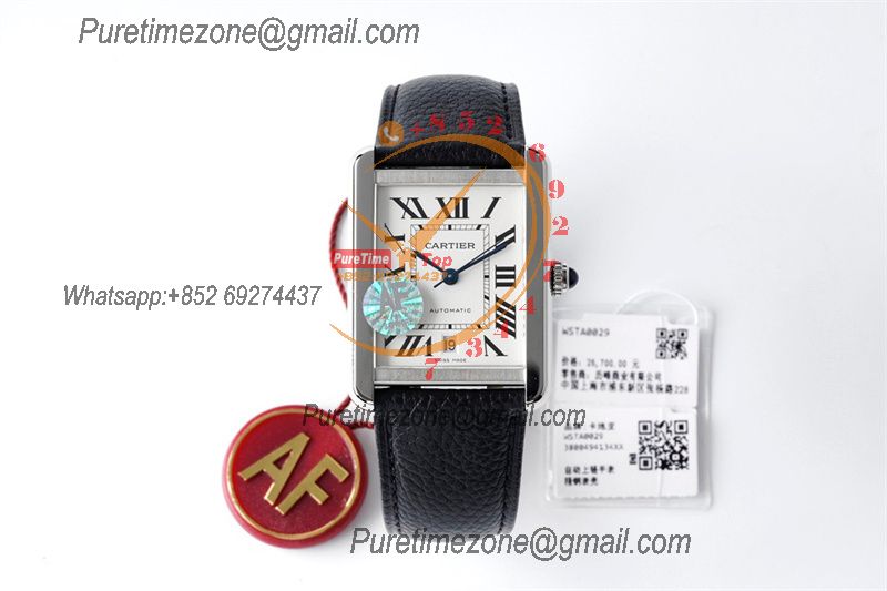 Tank Solo XL 31mm WSTA0040 M9015 Automatic Mens Watch Best Edition AF White Dial Black Leather Strap CHS