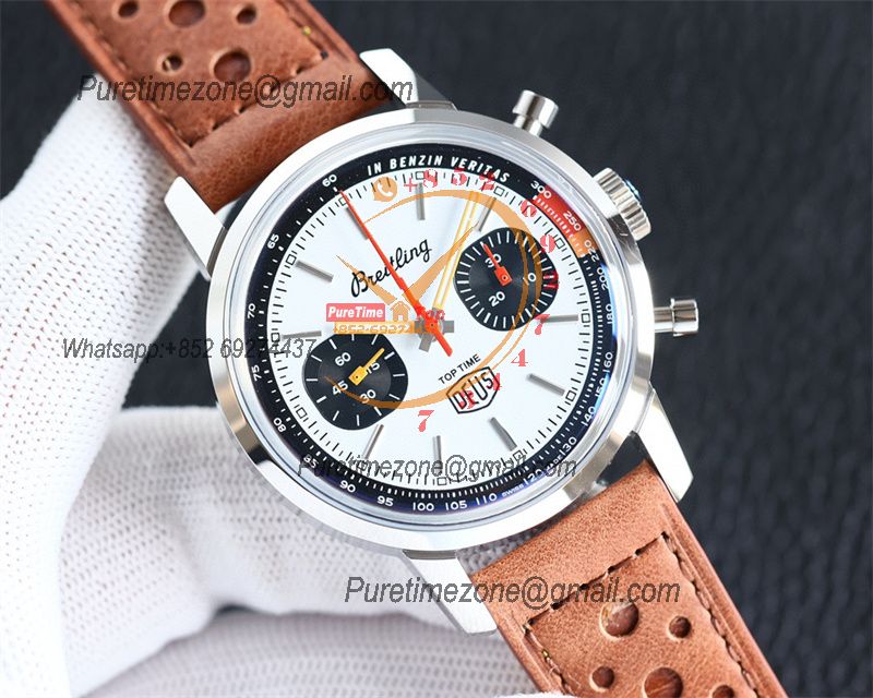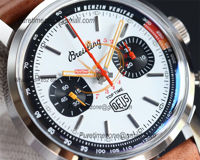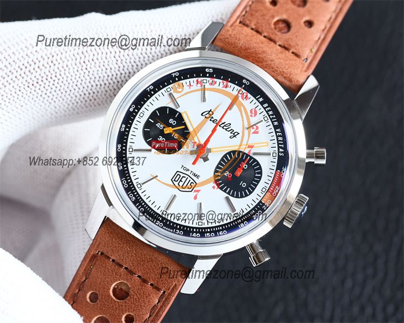 Home Breitling Premier Top Time A233101 Limited Edition A7750 Automatic Chronograp Mens Watch Best Edition BLSF White Zorro Dial Brown Leather