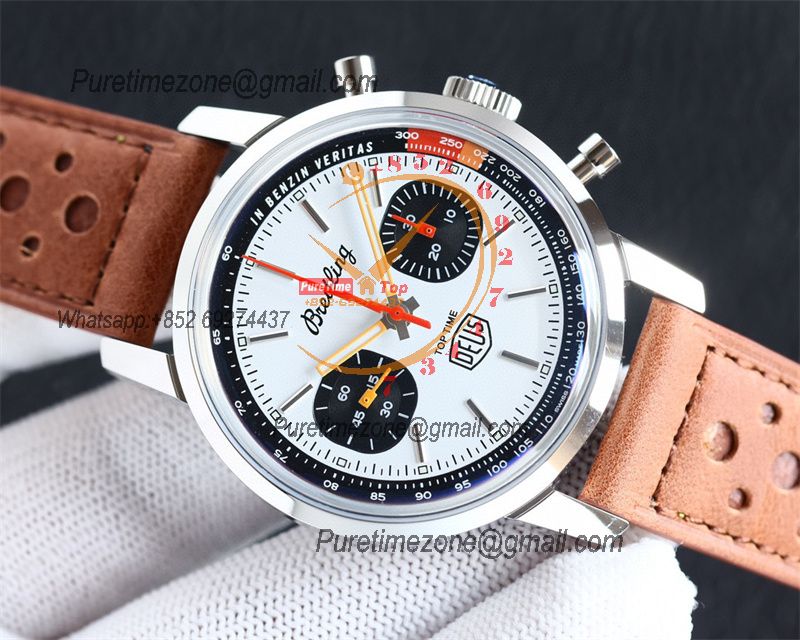 Top Time A233101 Limited Edition A7750 Automatic Chronograp Mens Watch Best Edition BLSF White Zorro Dial Brown Leather
