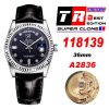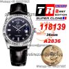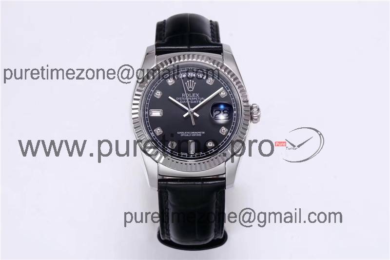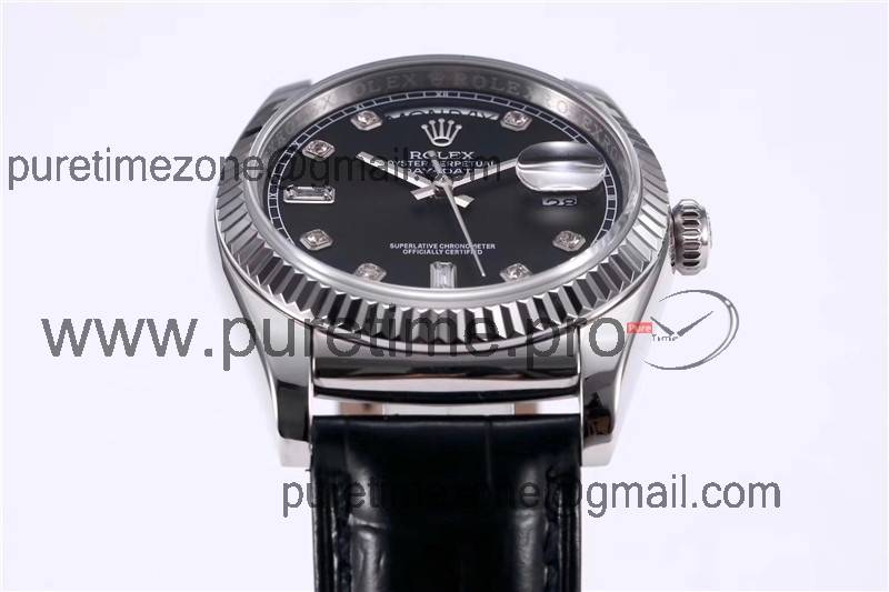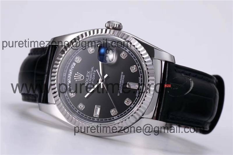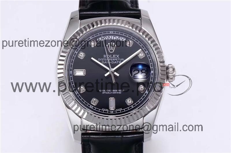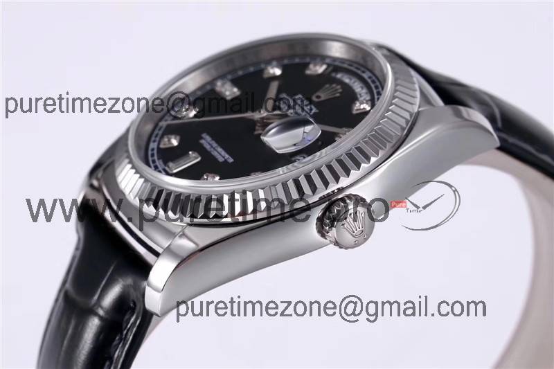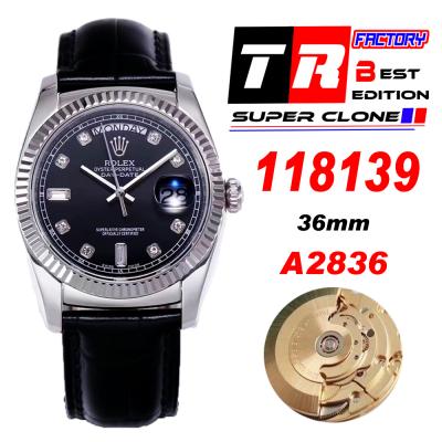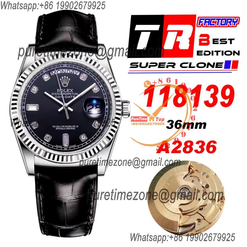 TRF Day-Date 118139 36mm A2836 Automatic Mens Watch Black Dial Diamond Black Leather Best Edition